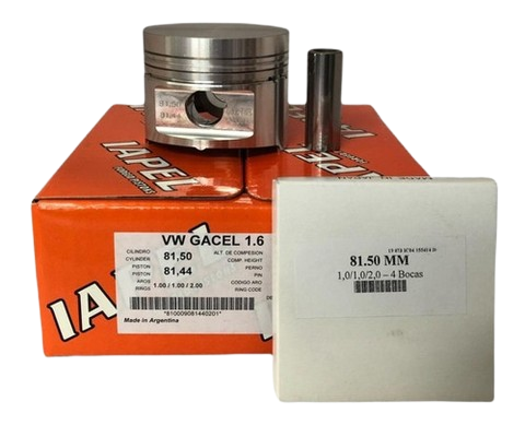 Kit completo para motor Volkswagen 1.6 AP (Gol, Saveiro, Gacel, Golf). Incluye pistones Iapel, aros finos tipo NPR y pernos. Compatible con medidas de rectificación estándar (81.0 mm a 82.0 mm), es ideal para restauraciones y preparaciones deportivas.
